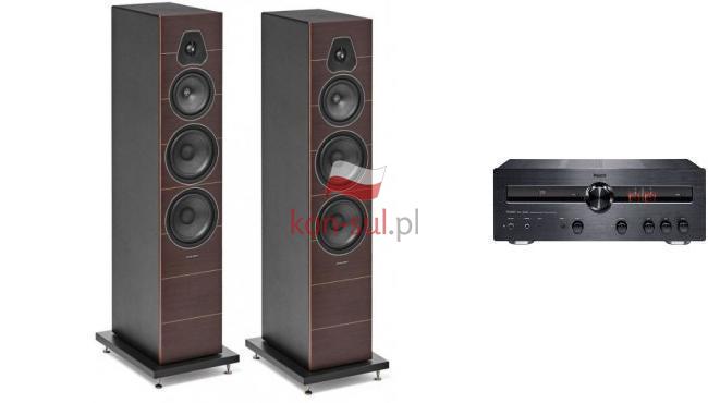 przetworniki: Głośnik wysokotonowy: 29 mm przetwornik DAD™ o wysokiej rozdzielczości. Wiskoelastyczne rozdzielenie przegrody.* Głośnik średniotonowy: przetwornik z membraną 150 mm. Niskokompresyjny kosz, konstrukcja Sonus faber. Specjalna membrana wykonana na zamówienie z mieszanki tradycyjnej masy celulozowej i innych włókien naturalnych, opracowana pod kątem najbardziej naturalnego dźwięku. Ultradynamiczna wydajność i wysoka liniowość.* Głośnik niskotonowy: dwa przetworniki z membraną 165 mm. Niskokompresyjny kosz, konstrukcja Sonus faber. Specjalna membrana wykonana na zamówienie z mieszanki tradycyjnej masy celulozowej i innych włókien naturalnych, opracowana pod kątem najbardziej naturalnego dźwięku. Ultradynamiczna wydajność i wysoka liniowość.* (* zaprojektowane przez Sonus faber)