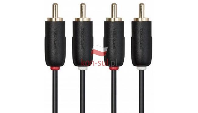 Uniwersalny przewód do łączenia stereofonicznych wejść/wyjść RCA/phono źródeł dźwięku. Może być używany do podłączenia odtwarzacza CD do wzmacniacza lub stereofonicznego wyjścia audio wideo do wzmacniacza. Minimalistyczny design pasujący do wszystkich nowoczesnych urządzeń A/V Ultraelastyczny kabel z formowanym odciążeniem Złącza pokryte 24-karatowym złotem Przewody z miedzi beztlenowej (OFC) w 99%